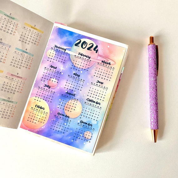 2024 Full Page Planner Sticker, Watercolour Planets Jumbo Calendar