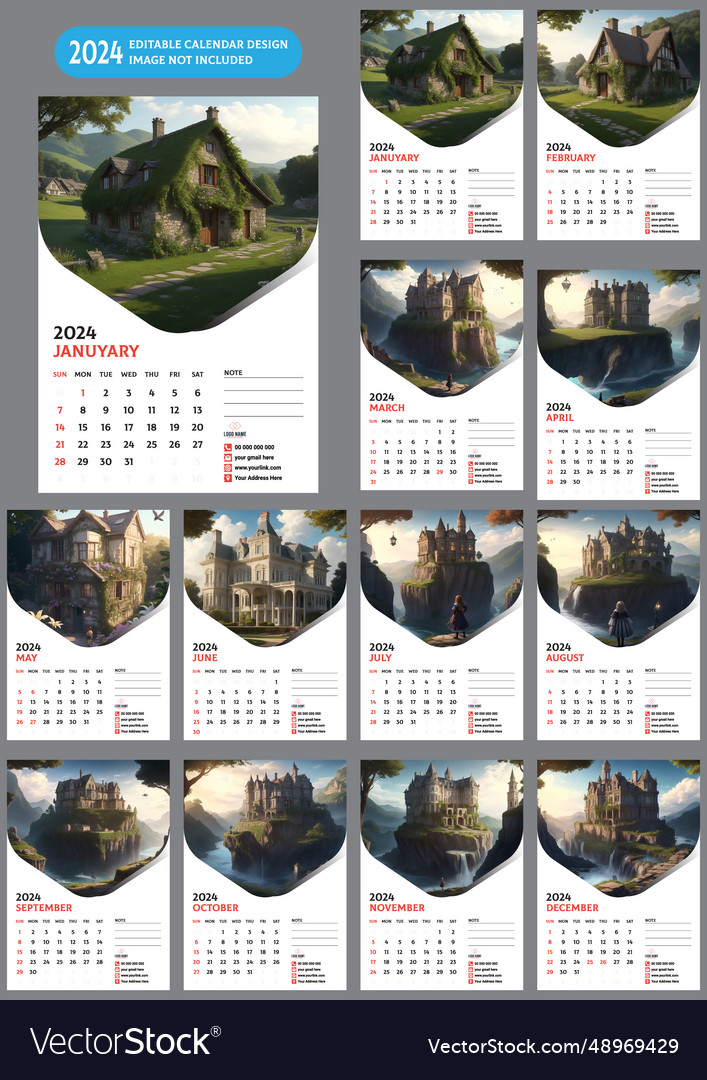 2024 12 month wall calendar for united kingdom Vector Image